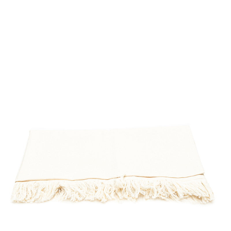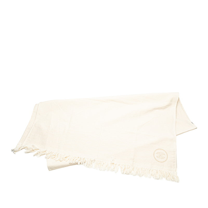 シャネル ココマーク フリンジ 大判ストール アイボリー ホワイト コットン ポリエステル レディース CHANEL 【中古】
