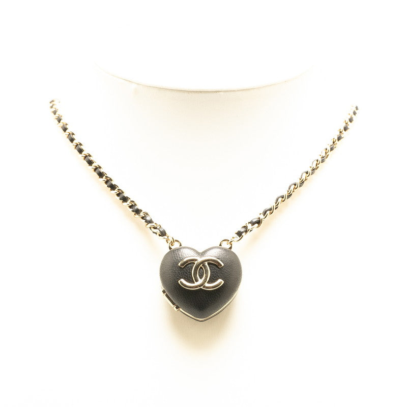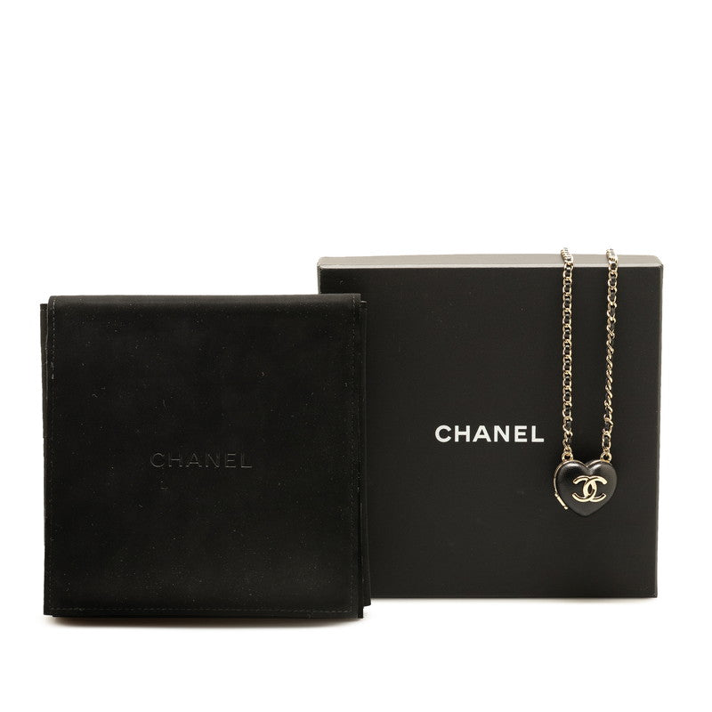 シャネル ココマーク ハート ミラー ロケットペンダント ネックレス ブラック ゴールド ラムスキン レディース CHANEL 【中古】