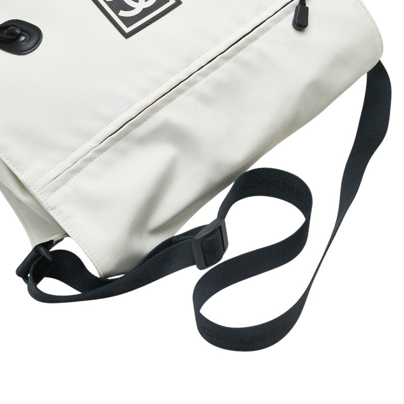 シャネル スポーツライン ココマーク ショルダーバッグ メッセンジャーバッグ オフホワイト ナイロン レザー レディース CHANEL 【中古】