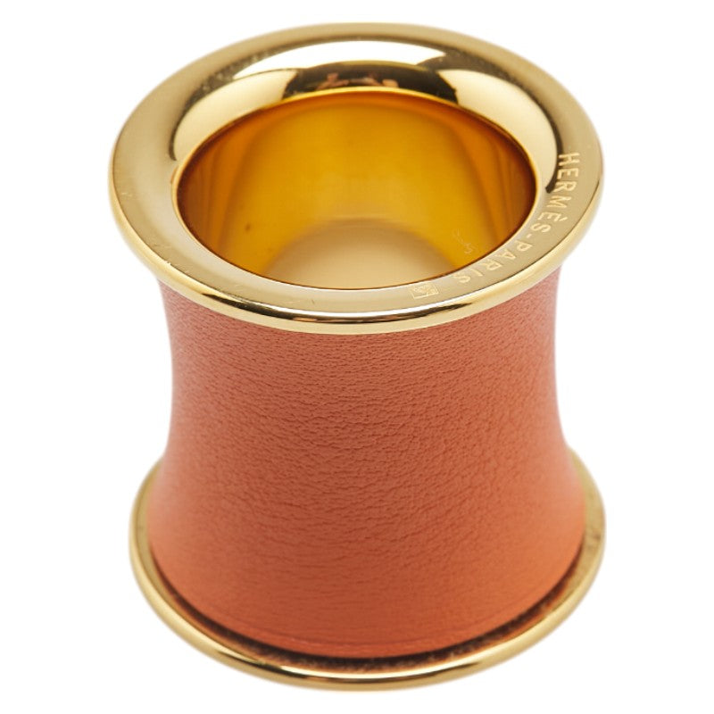 エルメス 筒型 スカーフリング ゴールド オレンジ レザー メッキ レディース HERMES 【中古】