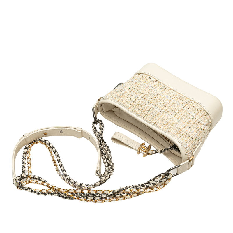 シャネル ガブリエル ドゥ シャネル スモール ホーボー チェーン ショルダーバッグ オフホワイト ツイード レザー レディース CHANEL 【中古】