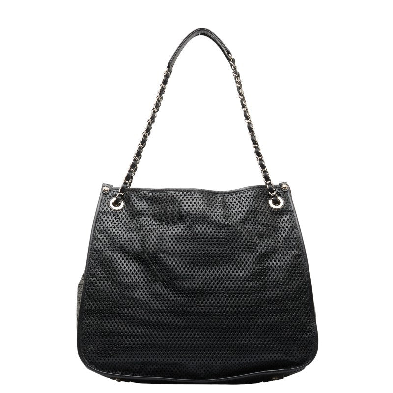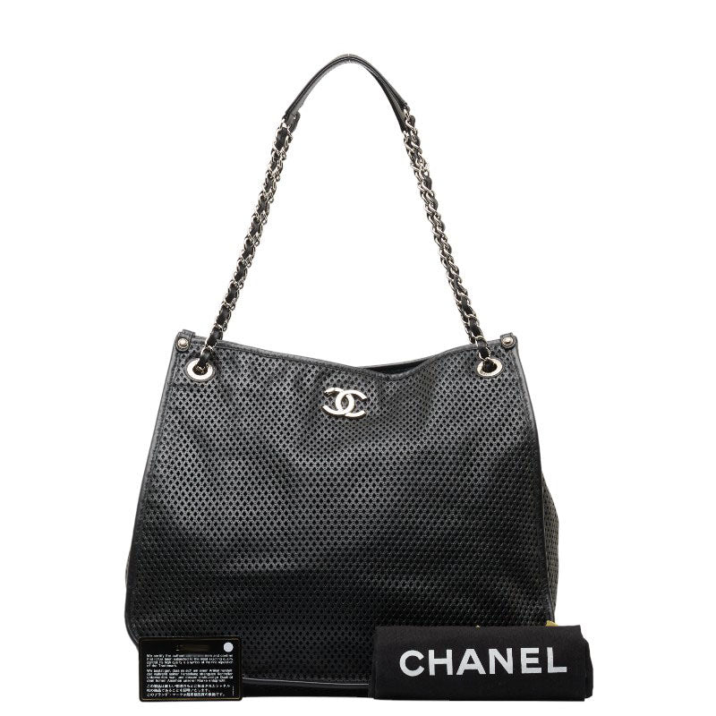 シャネル ココマーク パンチング チェーン 斜め掛け ショルダーバッグ トートバッグ ブラック レザー レディース CHANEL 【中古】