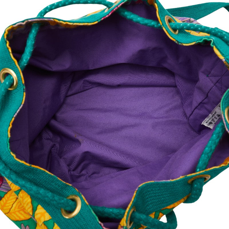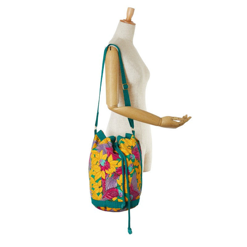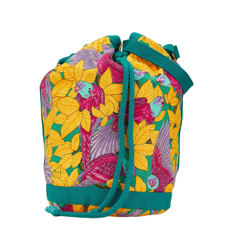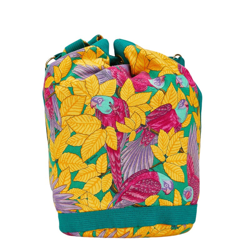 エルメス ボタニカル バード モチーフ 巾着 ショルダーバッグ グリーン マルチカラー コットン レディース HERMES 【中古】