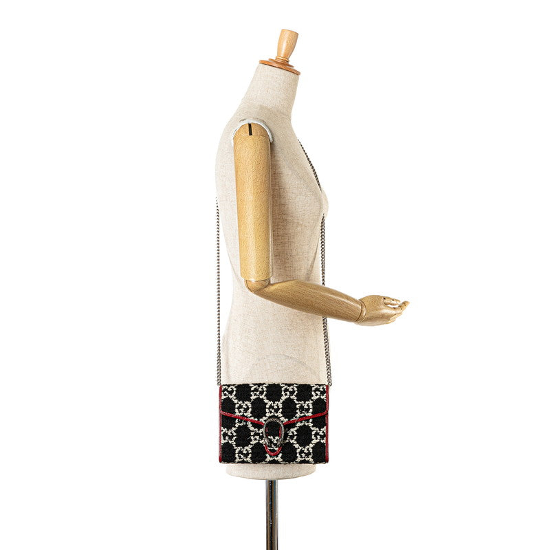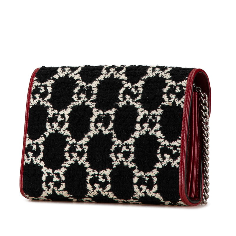 グッチ GG ディオニュソス チェーン ショルダーウォレット 401231 ブラック レッド ツイード レザー レディース GUCCI 【中古】