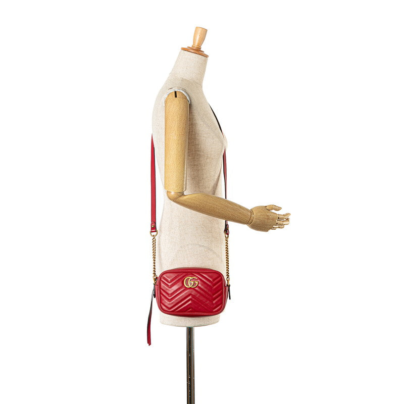 グッチ GGマーモント キルティング 斜め掛け ミニチェーン ショルダーバッグ 448065 レッド レザー レディース GUCCI 【中古】