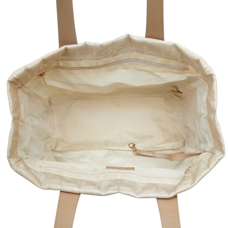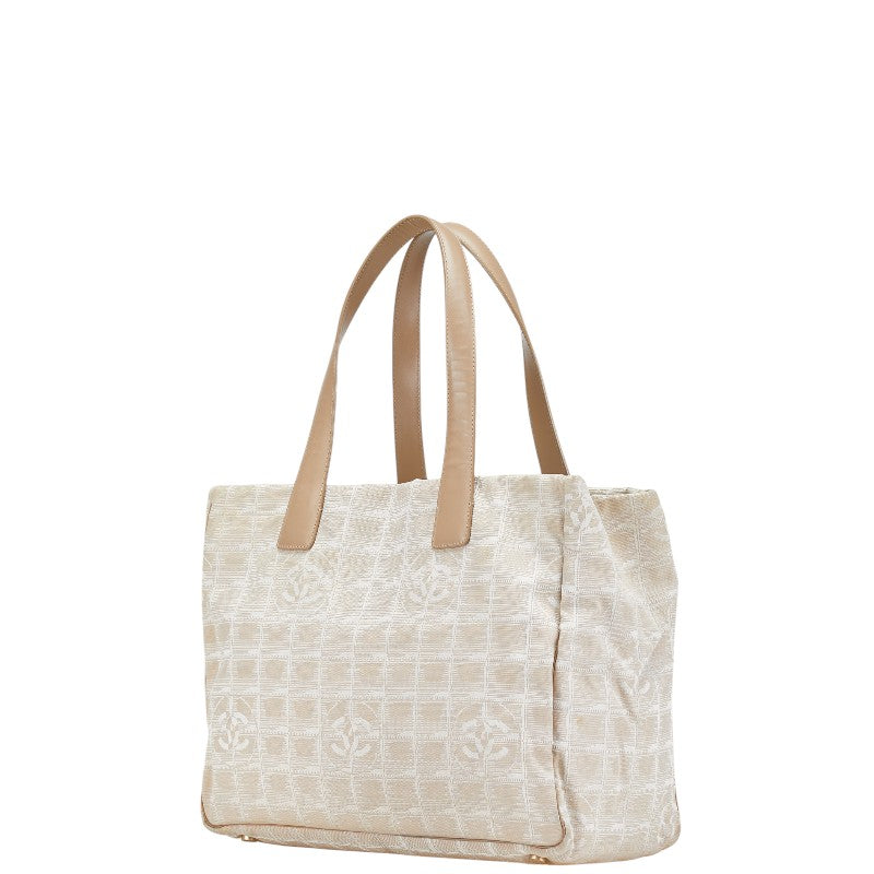 シャネル ニュートラベルライン トートMM トートバッグ ショルダーバッグ ベージュ ナイロン レザー レディース CHANEL 【中古】