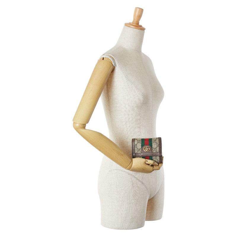 グッチ GGスプリーム オフィディア 三つ折り財布 523174 ブラウン PVC レザー レディース GUCCI 【中古】