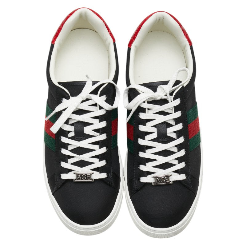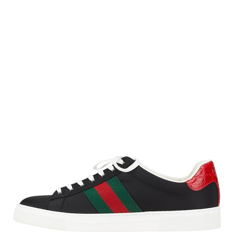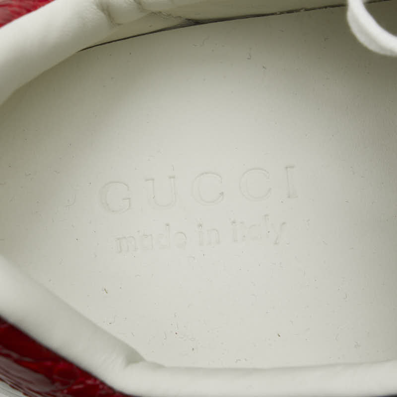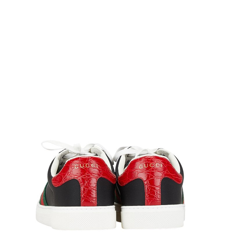 グッチ ACE エース シェル クロコ型押し スニーカー サイズ:8 800891 ブラック レッド ナイロン レザー メンズ GUCCI 【中古】