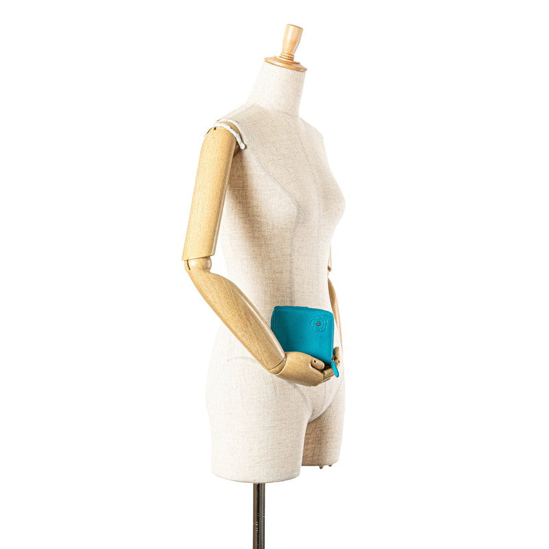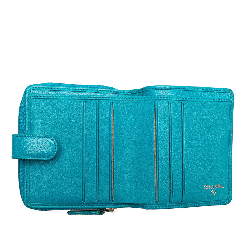 シャネル カメリア ココマーク 二つ折り財布 ライトブルー ラムスキン レディース CHANEL 【中古】