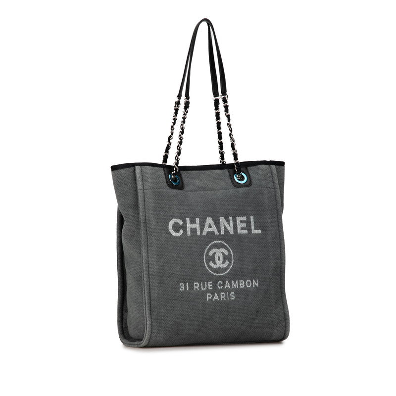 シャネル ドーヴィルPM チェーン トートバッグ ハンドバッグ A66939 グレー ブラック キャンバス レザー レディース CHANEL 【中古】