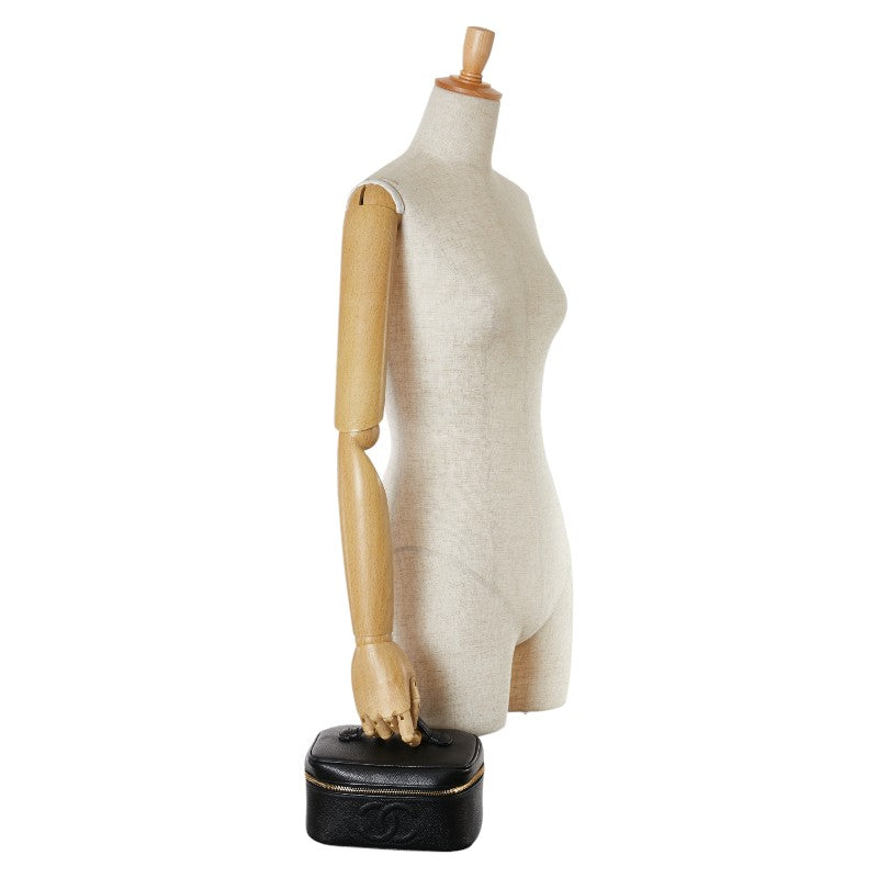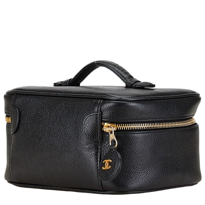 シャネル ココマーク バニティバッグ 化粧ポーチ ブラック キャビアスキン レディース CHANEL 【中古】