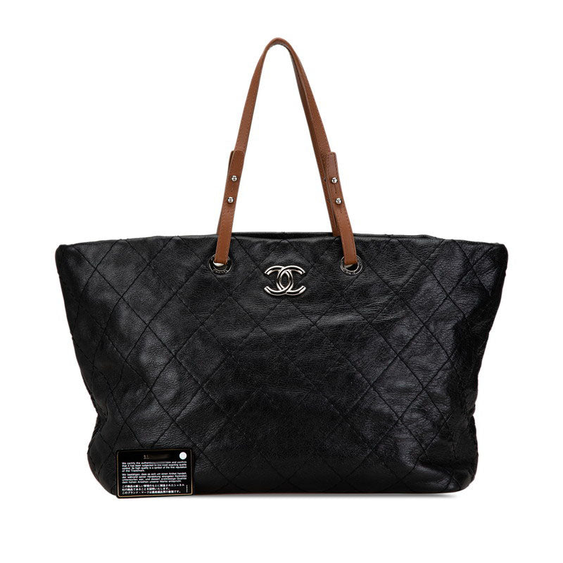 シャネル ココマーク オンザロード トートバッグ ブラック レザー レディース CHANEL 【中古】