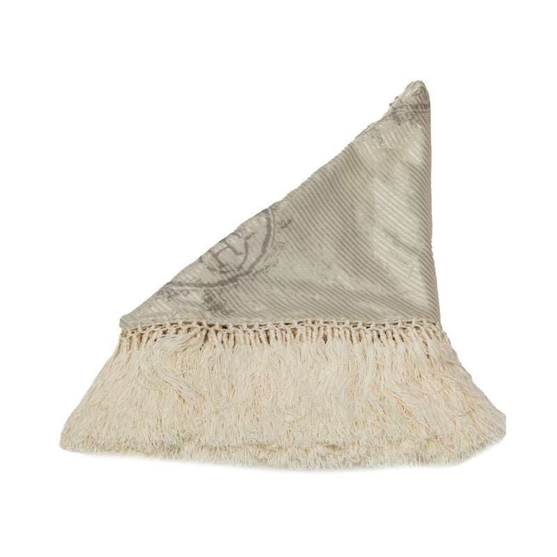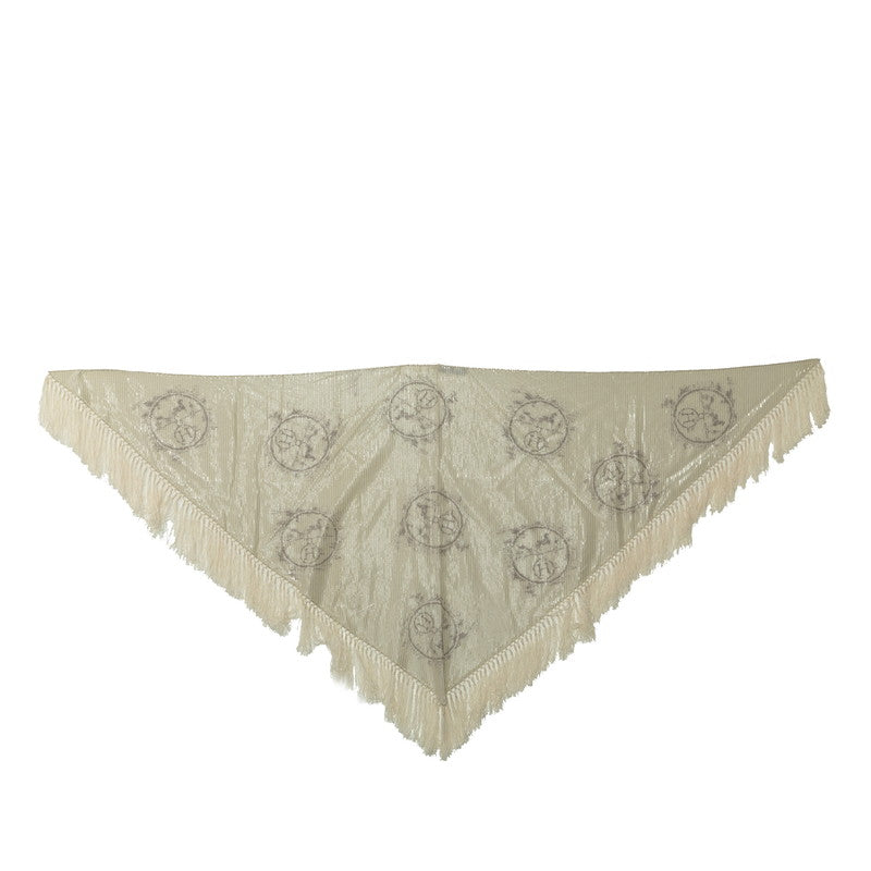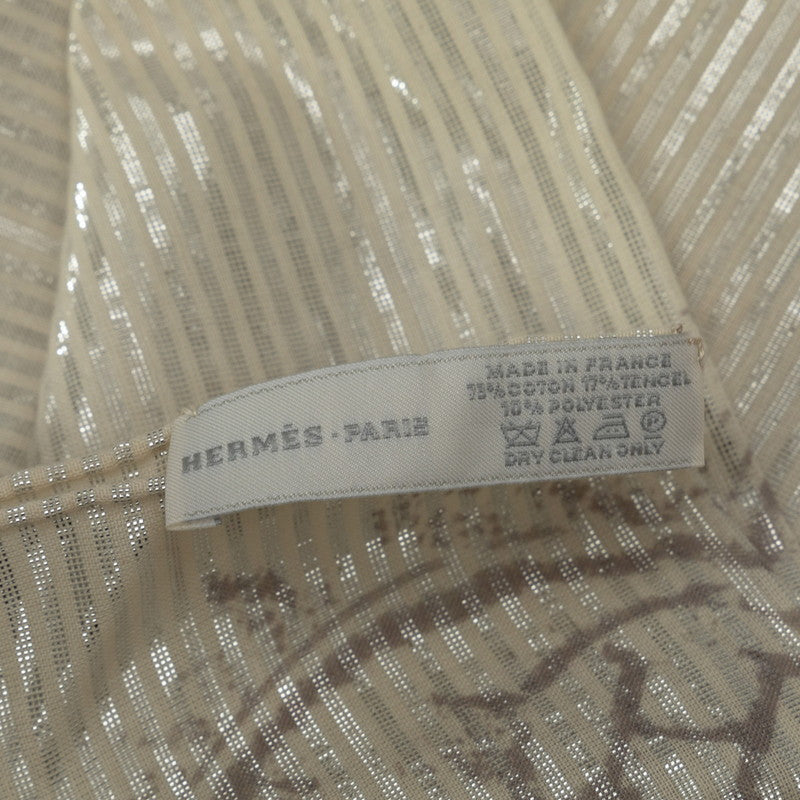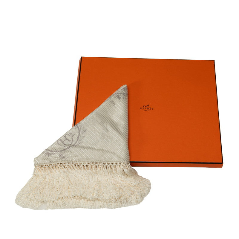 エルメス ポワント ノマード カレ フリンジ 大判 三角 ストール スカーフ ホワイト コットン ポリエステル テンセル レディース HERMES 【中古】