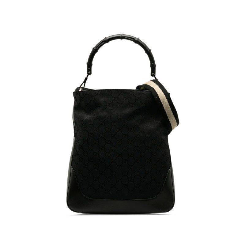 グッチ GGキャンバス バンブー ハンドバッグ ショルダーバッグ 2WAY 001 4058 ブラック キャンバス レザー レディース GUCCI 【中古】