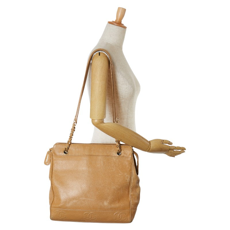 シャネル ココマーク チェーン トートバッグ ベージュ キャビアスキン レディース CHANEL 【中古】