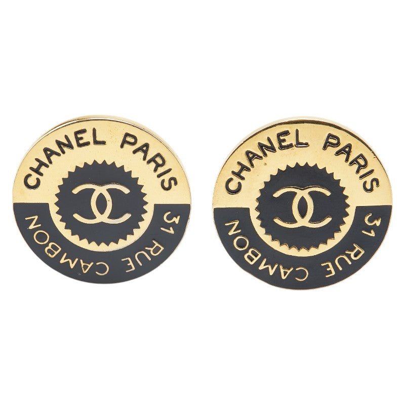 シャネル ココマーク 31 RUE CAMBON カンボン イヤリング ゴールド ブラック メッキ レディース CHANEL 【中古】