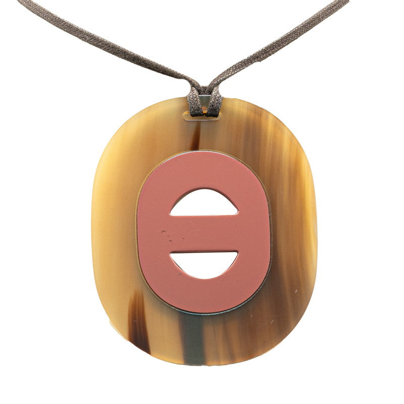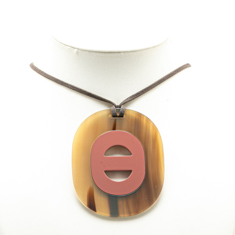 エルメス フィデリオ ネックレス ブラウン ピンク バッファローホーン レディース HERMES 【中古】