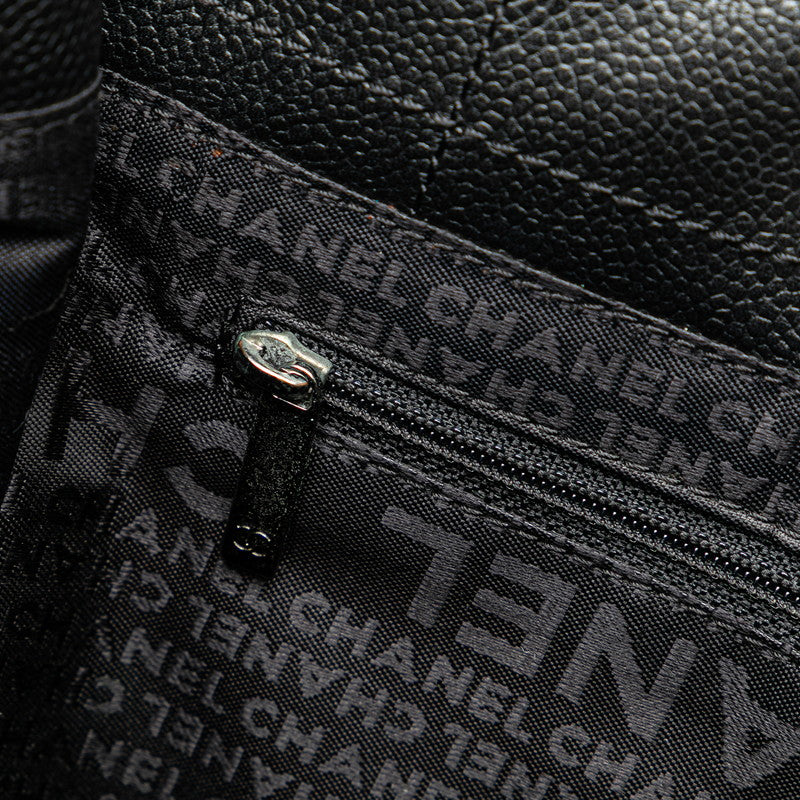 シャネル チョコバー ココマーク トートバッグ ブラック キャビアスキン レディース CHANEL 【中古】
