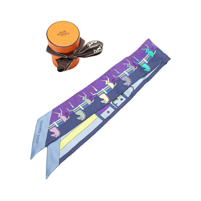 エルメス ツイリー Rocabar ロカバール 馬柄 スカーフ パープル ネイビー マルチカラー シルク レディース HERMES 【中古】
