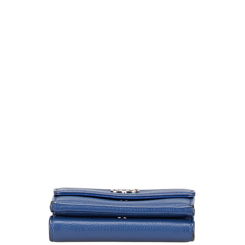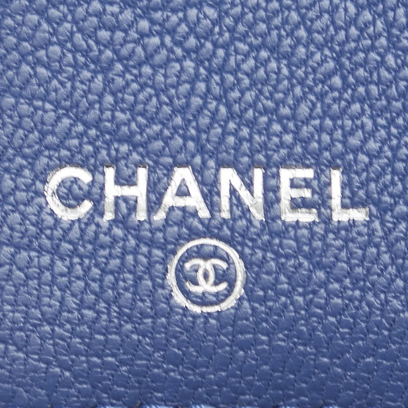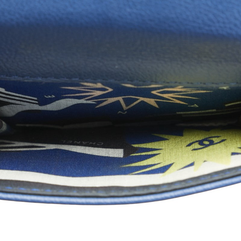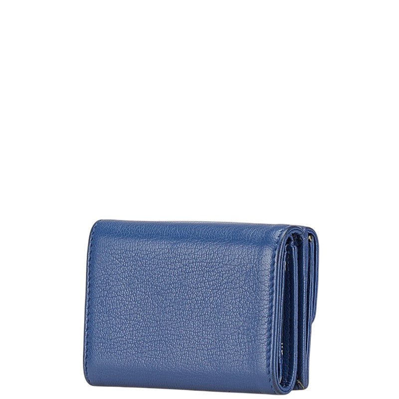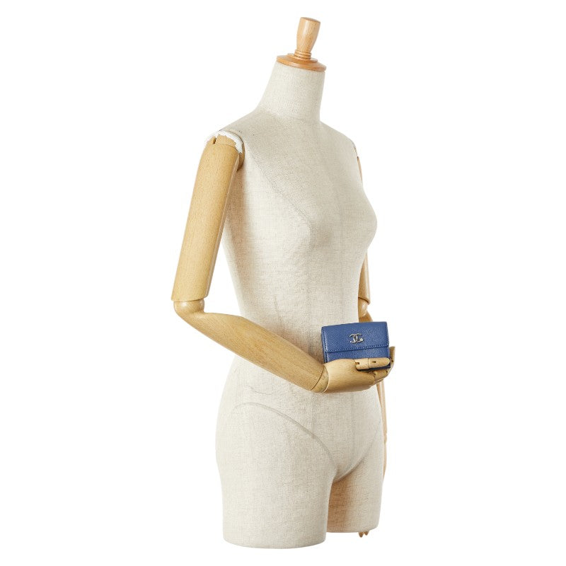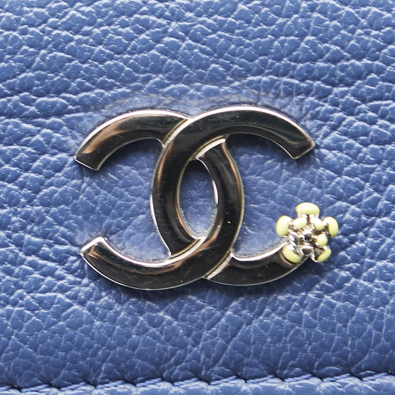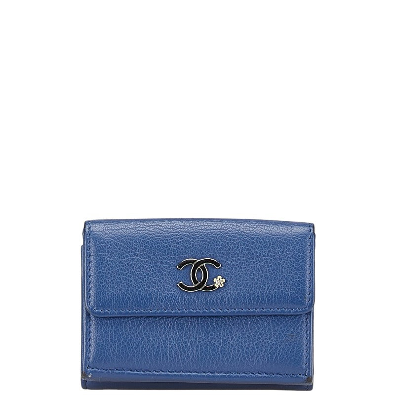 シャネル ココマーク ラッキーフラワー 三つ折り財布 スモールウォレット コンパクトウォレット ブルー レザー レディース CHANEL 【中古】