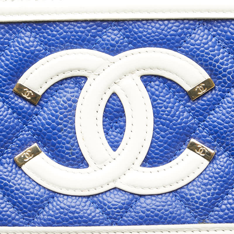 シャネル ココマーク トリコロール ショルダーバッグ ネイビー ホワイト キャビアスキン レディース CHANEL 【中古】
