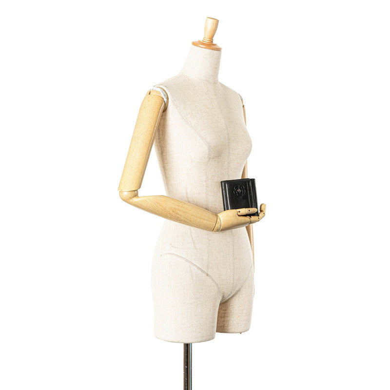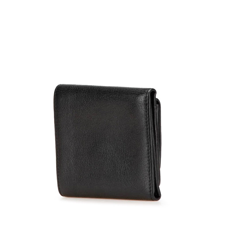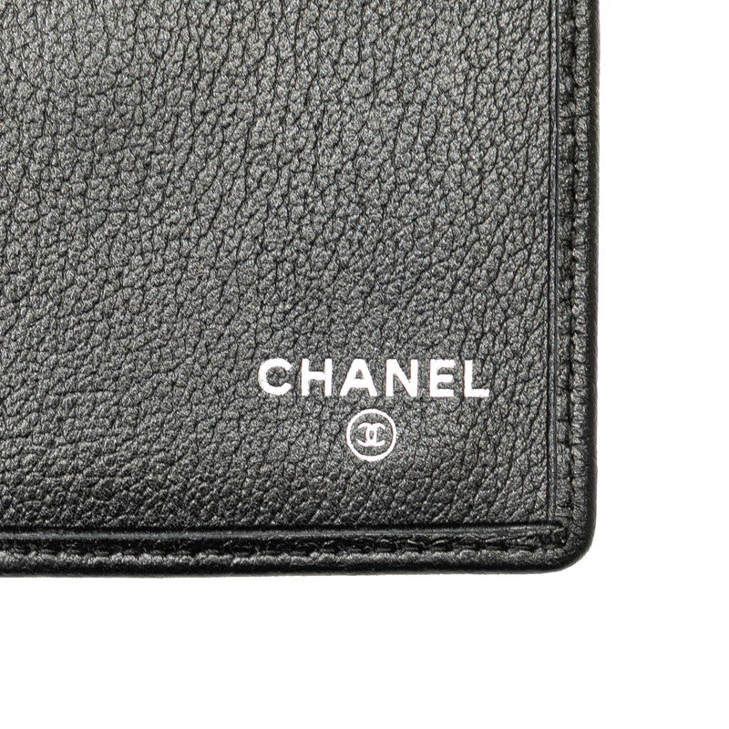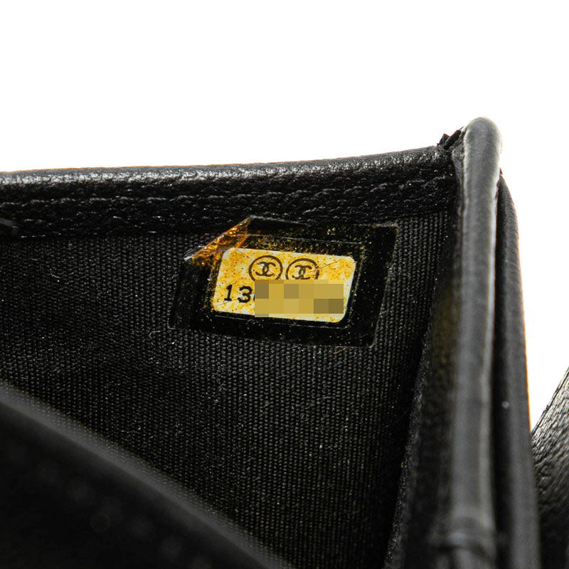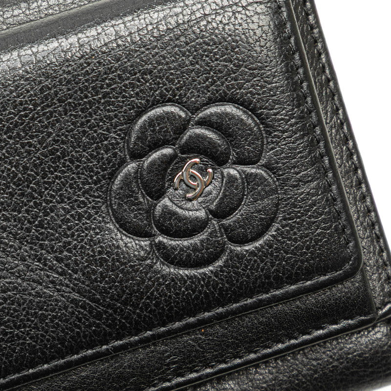 シャネル カメリア ココマーク 三つ折り財布 コンパクトウォレット ブラック ラムスキン レディース CHANEL 【中古】