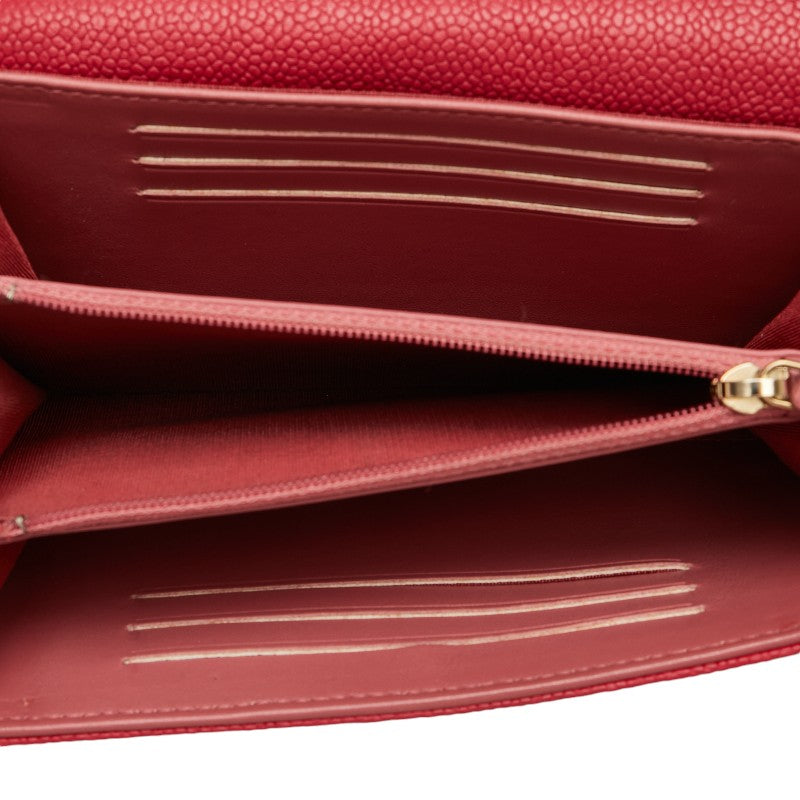 シャネル ココマーク フラップウォレット ピンク キャビアスキン レディース CHANEL 【中古】