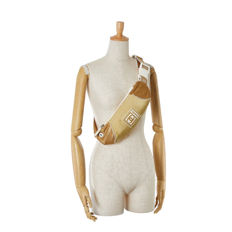 シャネル スポーツライン ウエストバッグ ボディバッグ ベージュ ゴールド ナイロン レディース CHANEL 【中古】