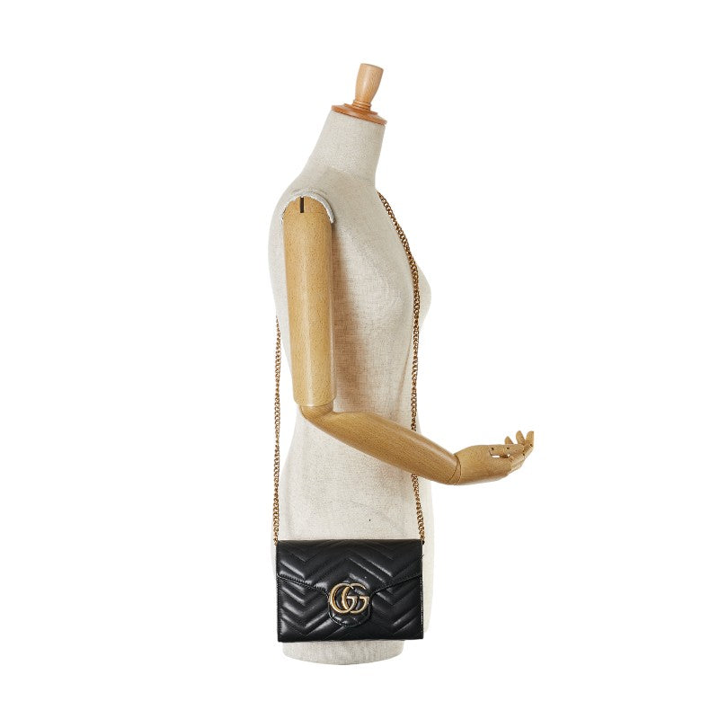 グッチ GGマーモント チェーン ショルダーウォレット バッグ 474575 ブラック レザー レディース GUCCI 【中古】