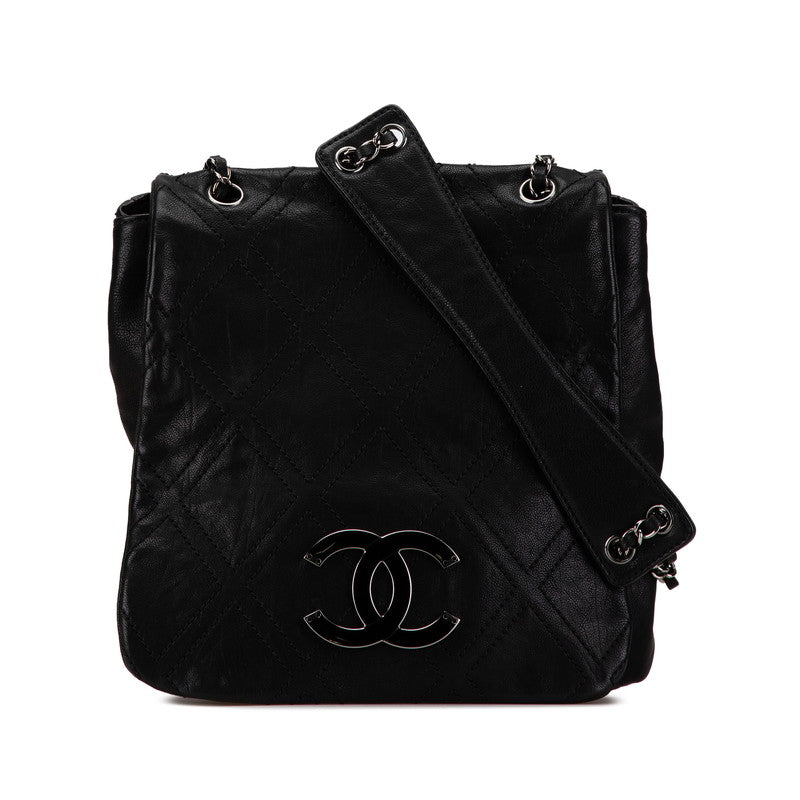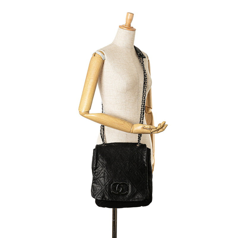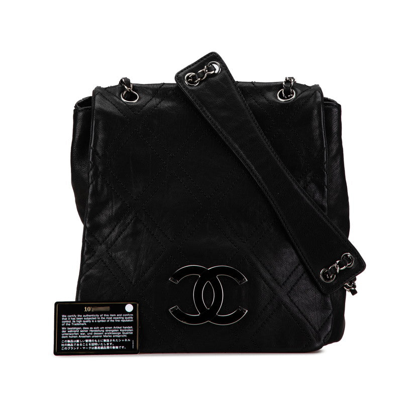 シャネル ダイヤステッチ ココマーク 斜め掛け ダブルチェーン ショルダーバッグ A32453 ブラック カーフ レディース CHANEL 【中古】