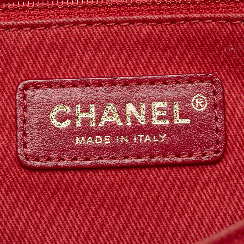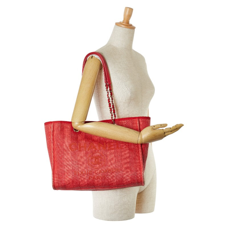 シャネル ドーヴィル トートMM ココマーク チェーン トートバッグ レッド キャンバス レザー レディース CHANEL 【中古】