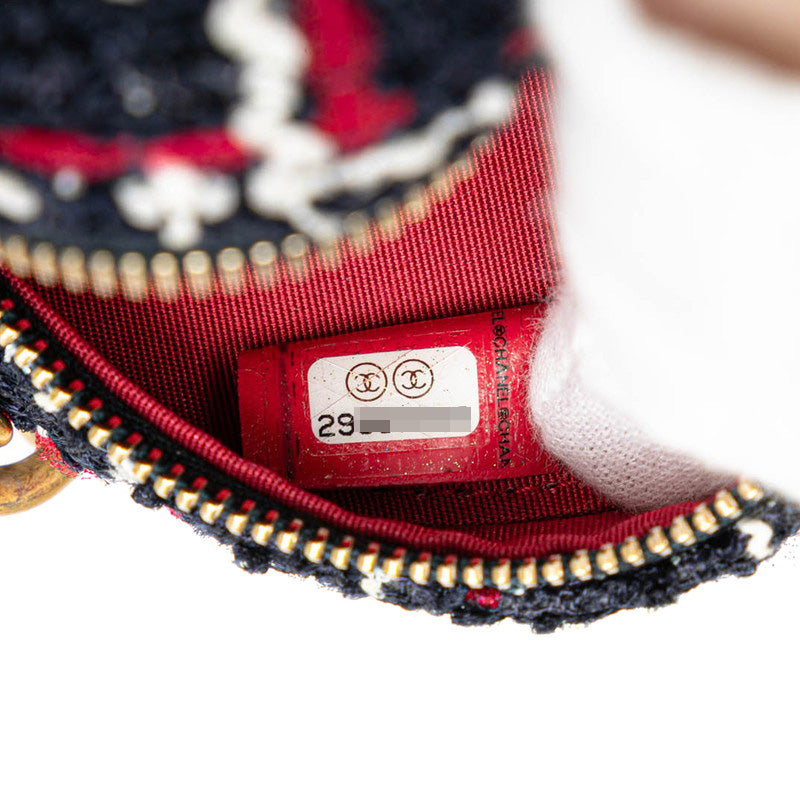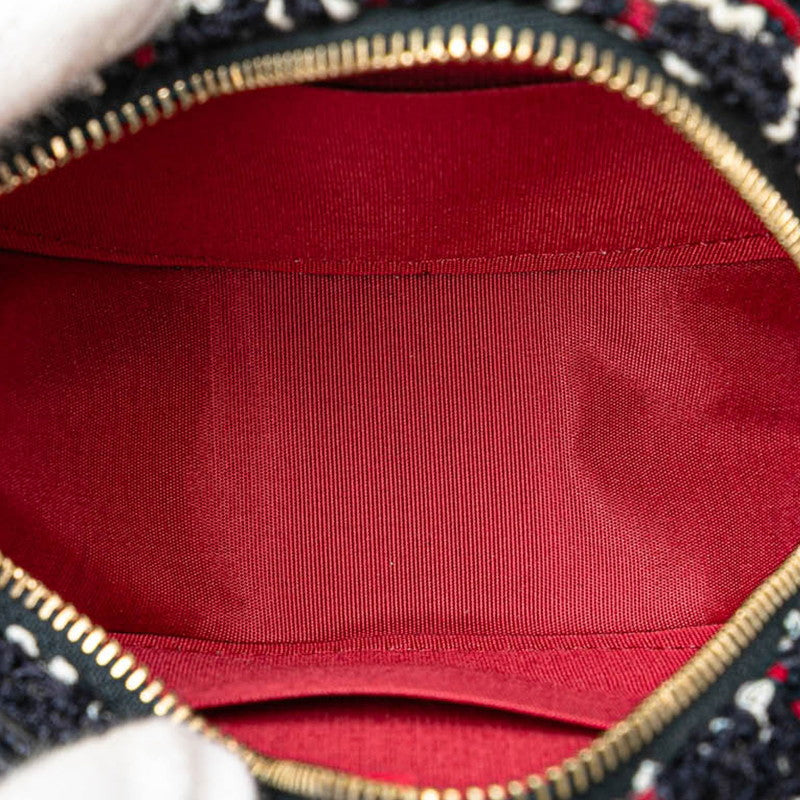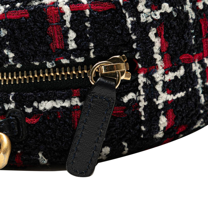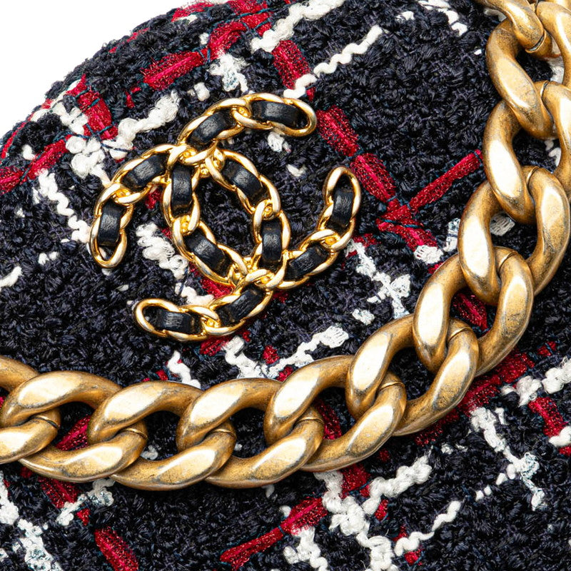 シャネル シャネル19 ラウンド型 斜め掛け チェーン ショルダーバッグ ネイビー レッド ツイード レザー レディース CHANEL 【中古】
