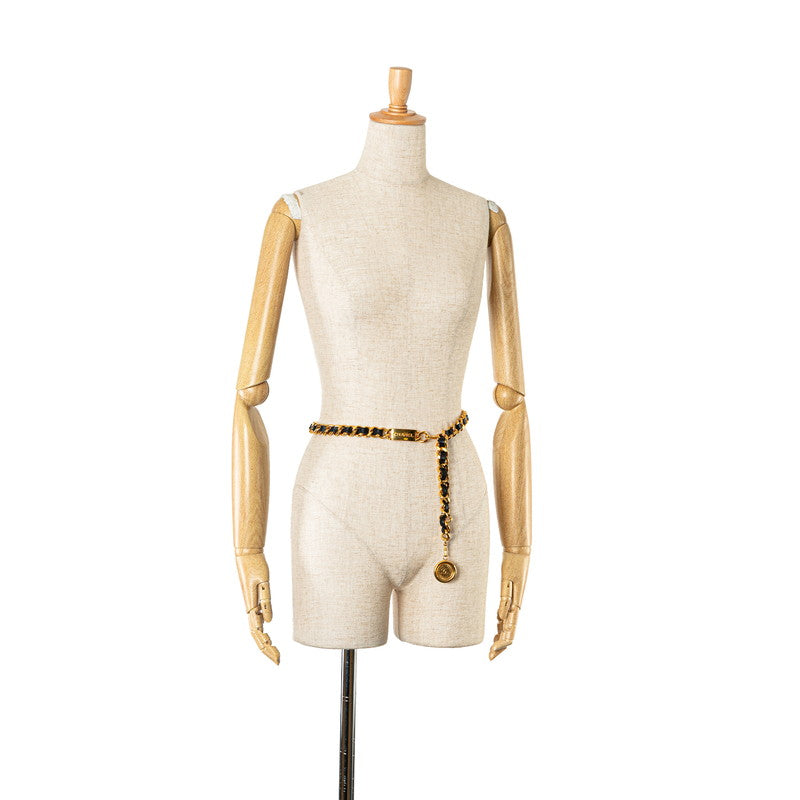 シャネル ココマーク カンボンコイン チェーン ベルト ゴールド ブラック メッキ レザー レディース CHANEL 【中古】