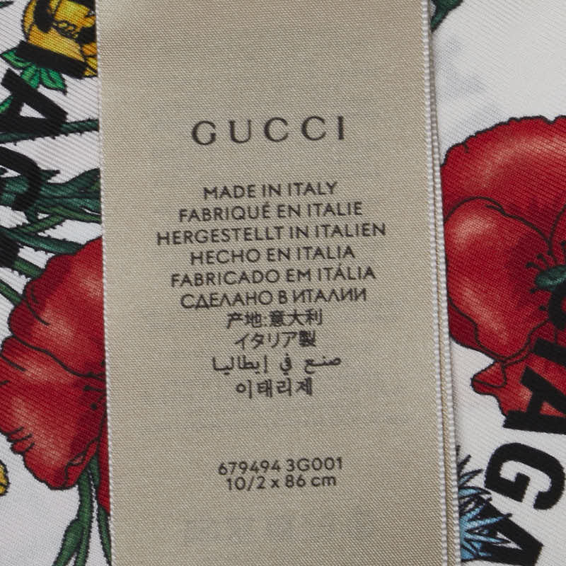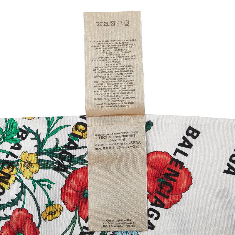 グッチ × BALENCIAGA バレンシアガ ザ ハッカー プロジェクト フローラプリント ネックボウ スカーフ ホワイト マルチカラー シルク レディース GUCCI 【中古】