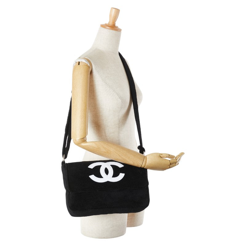 シャネル ココマーク ノベルティ 斜め掛け ショルダーバッグ ブラック ホワイト パイル エナメル レディース CHANEL 【中古】