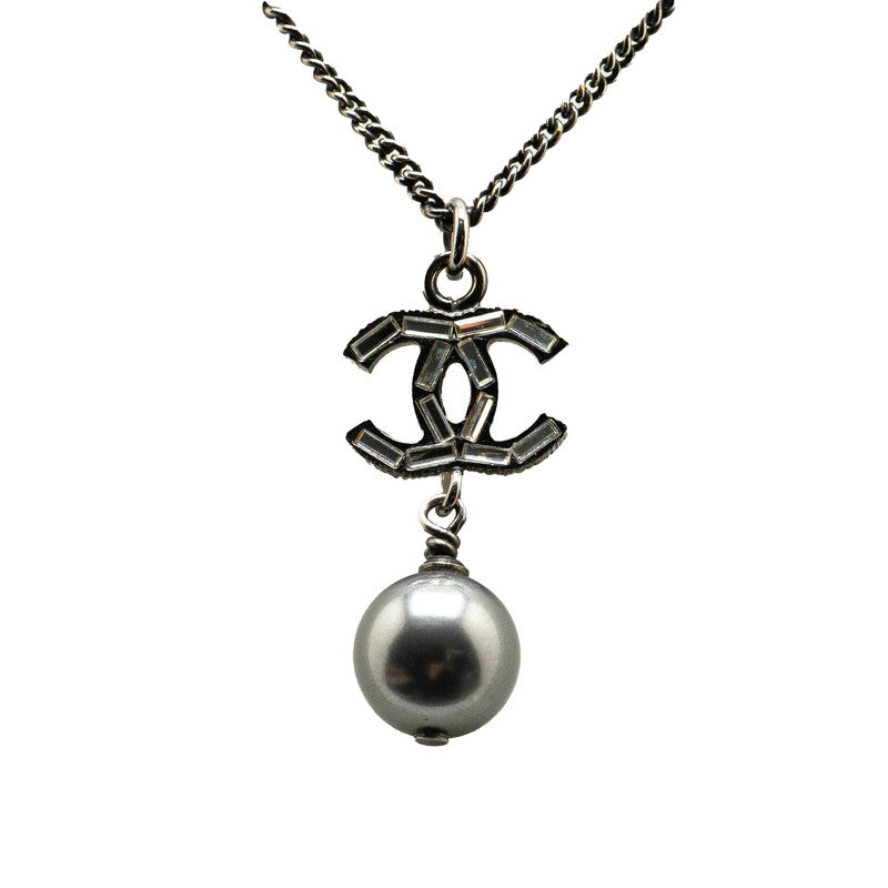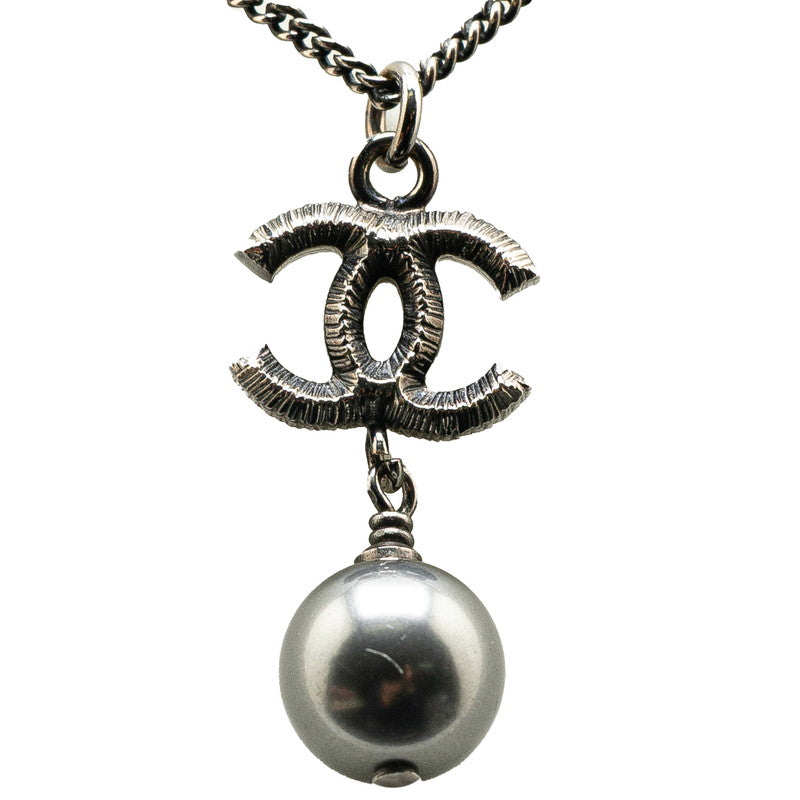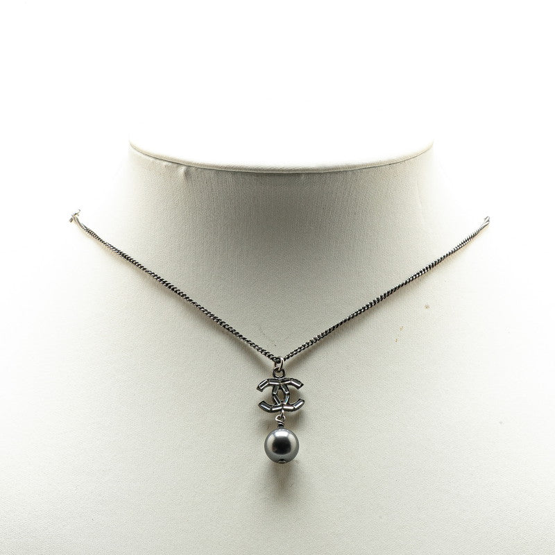 シャネル ココマーク フェイクパール ビジュー ネックレス ブラック メタル レディース CHANEL 【中古】