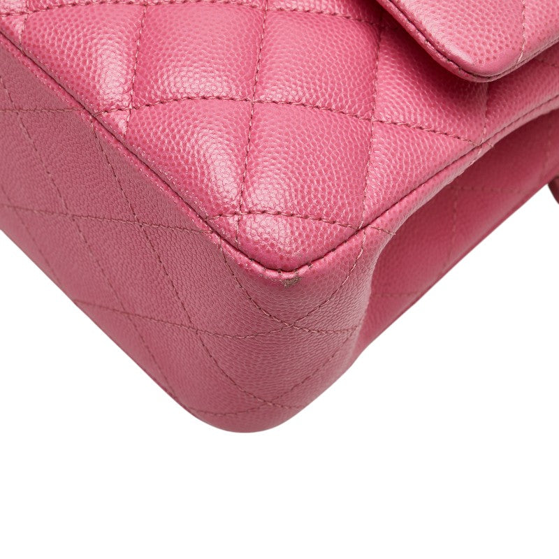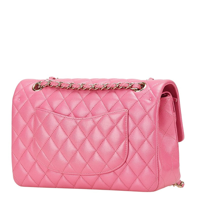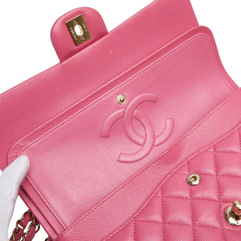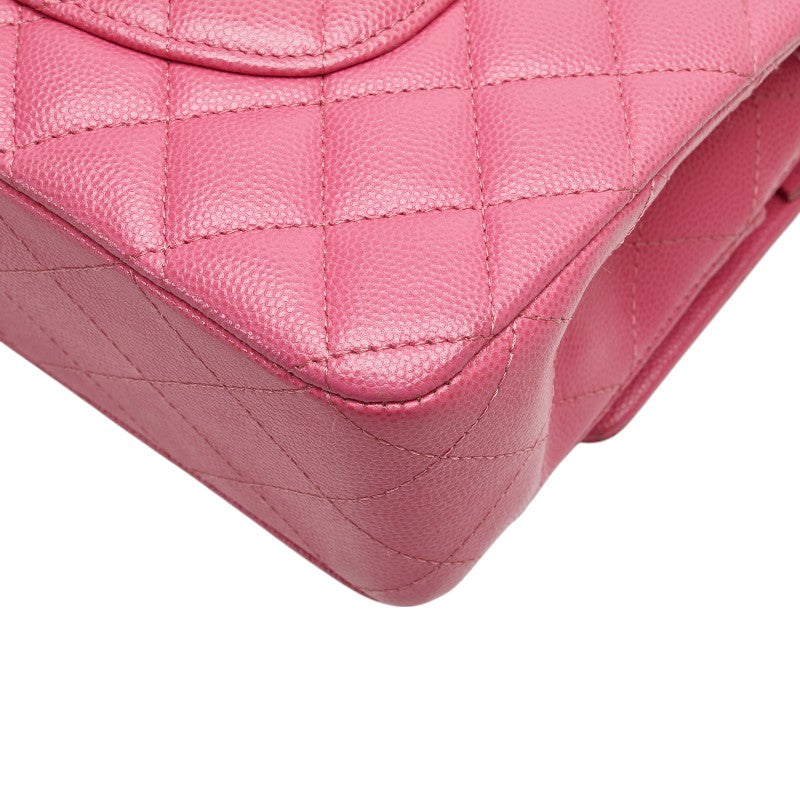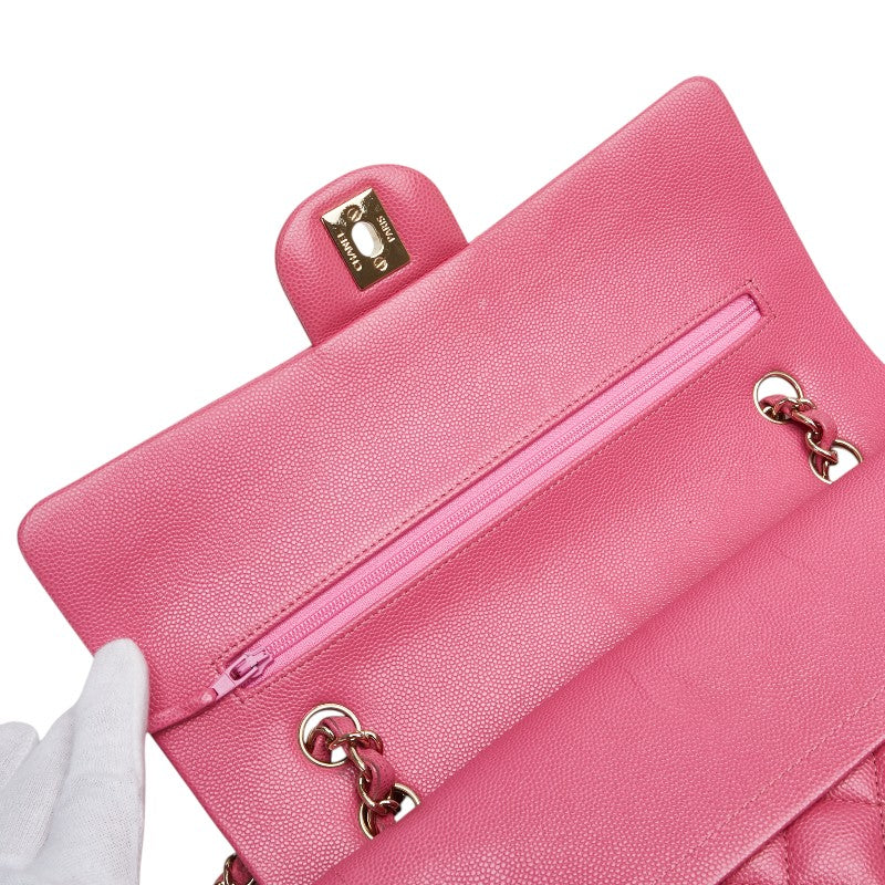 シャネル ココマーク マトラッセ25 ダブルフラップ チェーン ショルダーバッグ ピンク ゴールド金具 キャビアスキン レディース CHANEL 【中古】