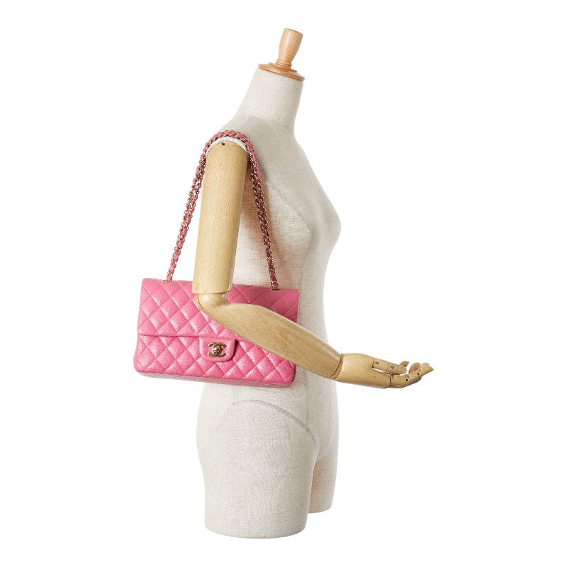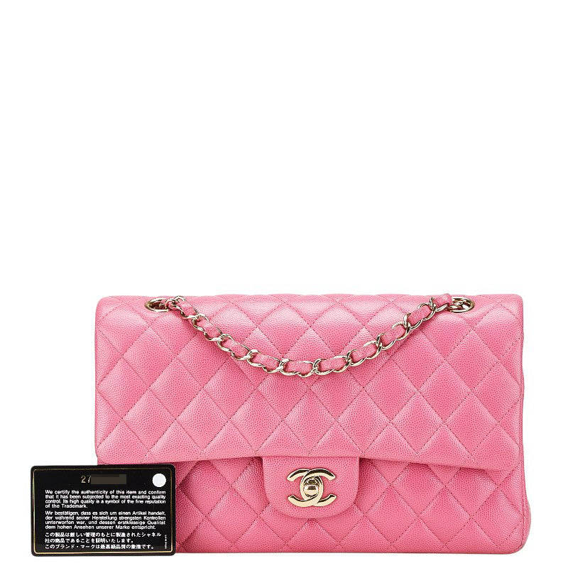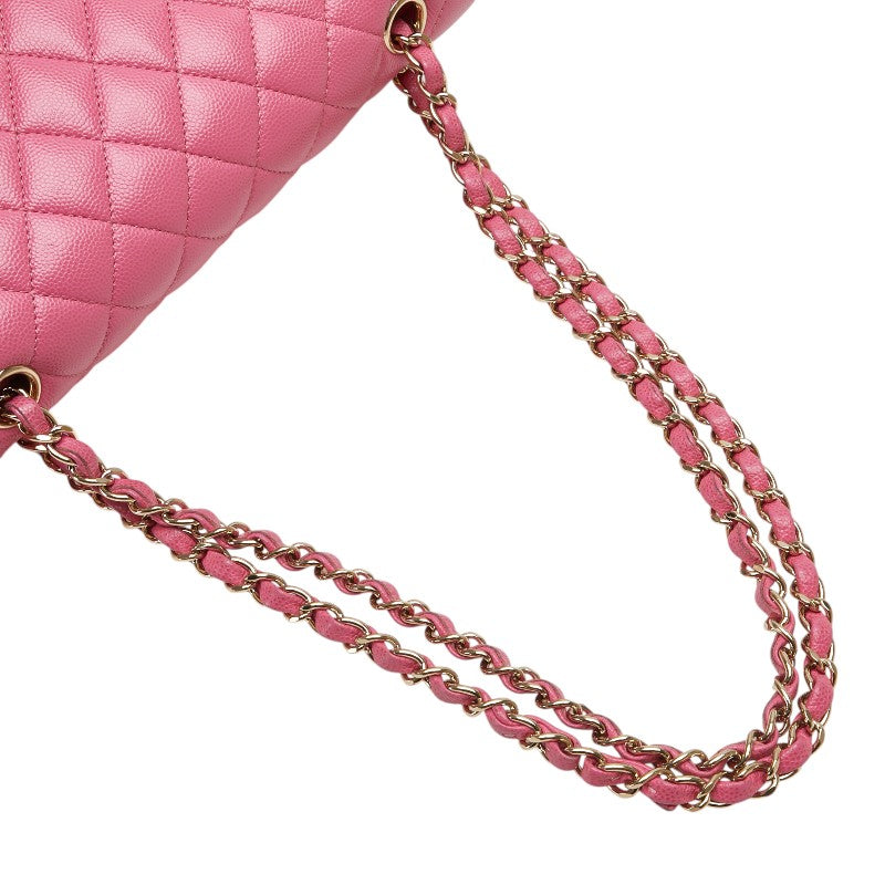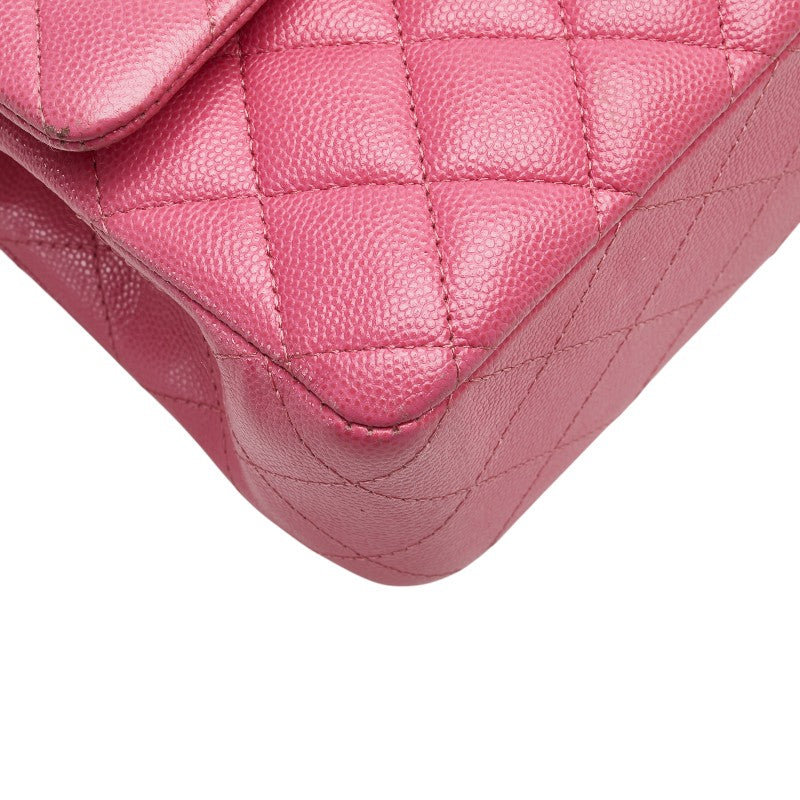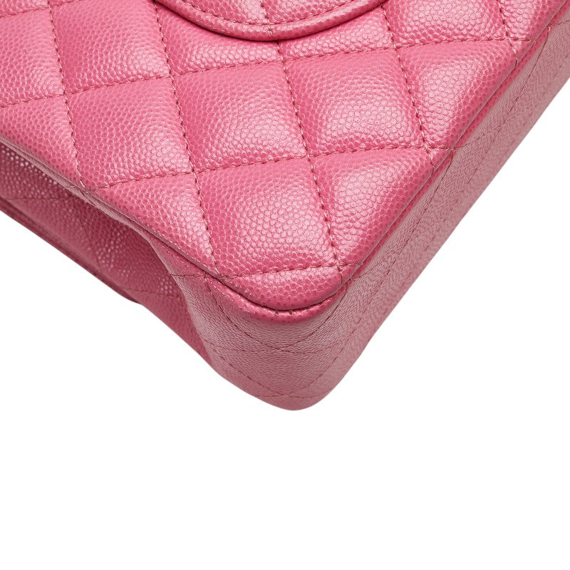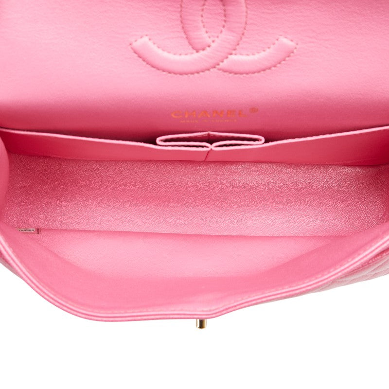 シャネル ココマーク マトラッセ25 ダブルフラップ チェーン ショルダーバッグ ピンク ゴールド金具 キャビアスキン レディース CHANEL 【中古】
