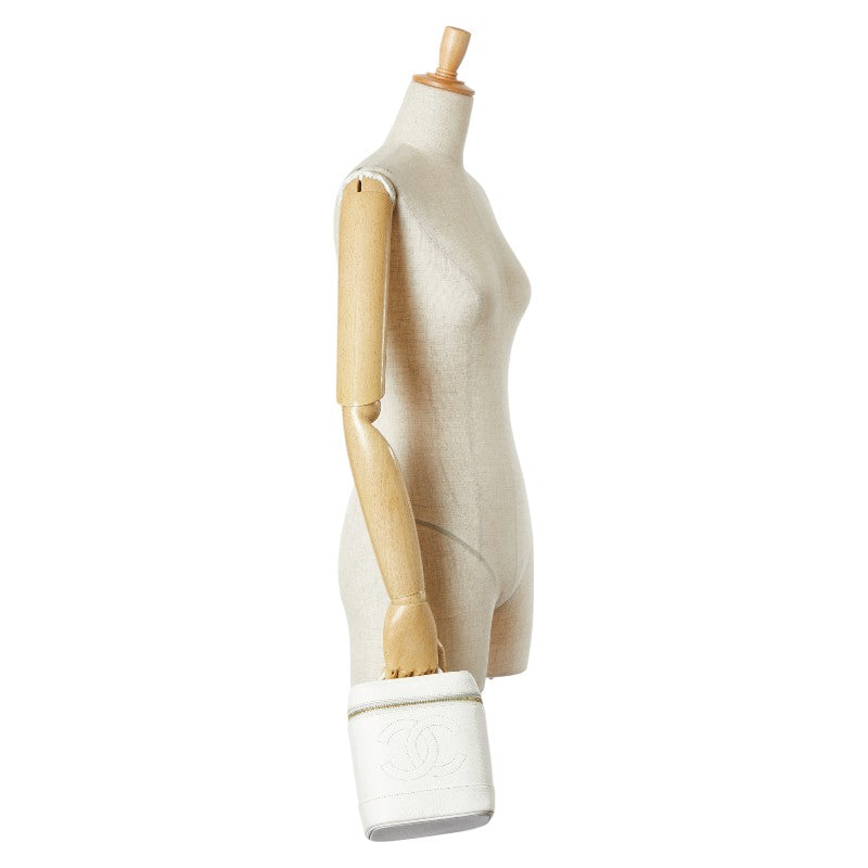 シャネル ココマーク バニティバッグ A01998 ホワイト キャビアスキン レディース CHANEL 【中古】