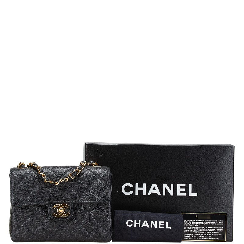シャネル ココマーク チェーン ミニショルダーバッグ ブラック キャビアスキン レディース CHANEL 【中古】
