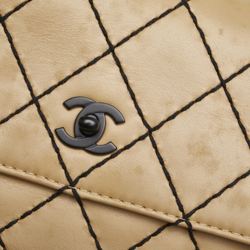シャネル ココマーク マトラッセ ワイルドステッチ チェーン ショルダーバッグ ベージュ ラムスキン レディース CHANEL 【中古】