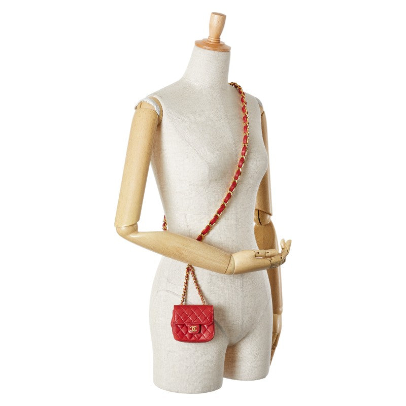 シャネル ココマーク ミニミニマトラッセ チェーン ミニショルダーバッグ A2000 レッド ラムスキン レディース CHANEL 【中古】
