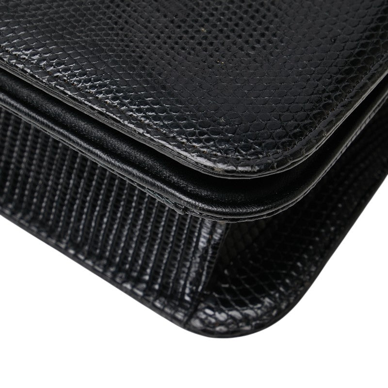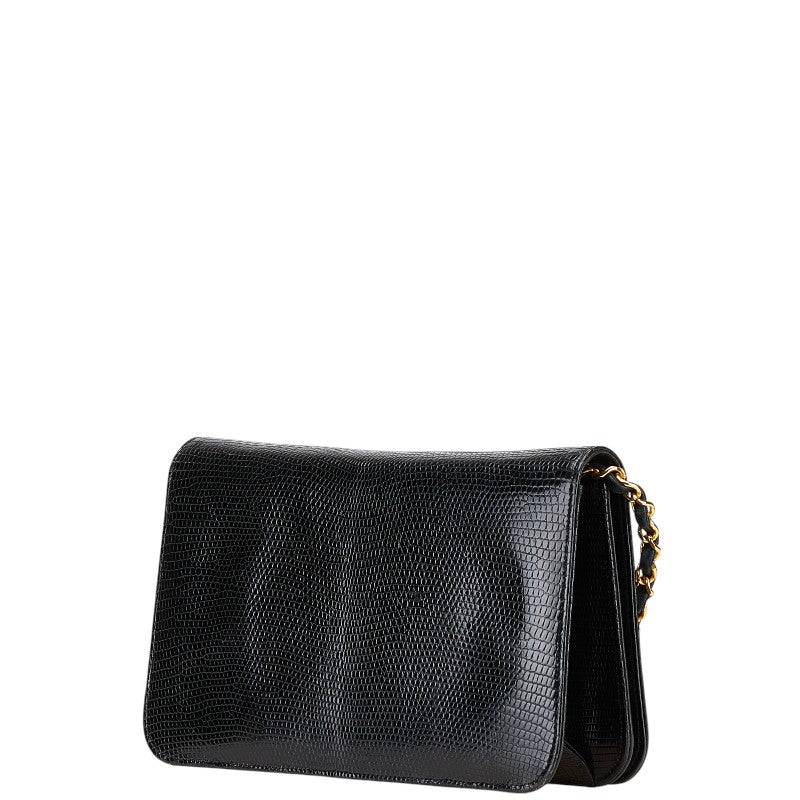 シャネル ココマーク チェーン ショルダーバッグ ブラック リザード レディース CHANEL 【中古】