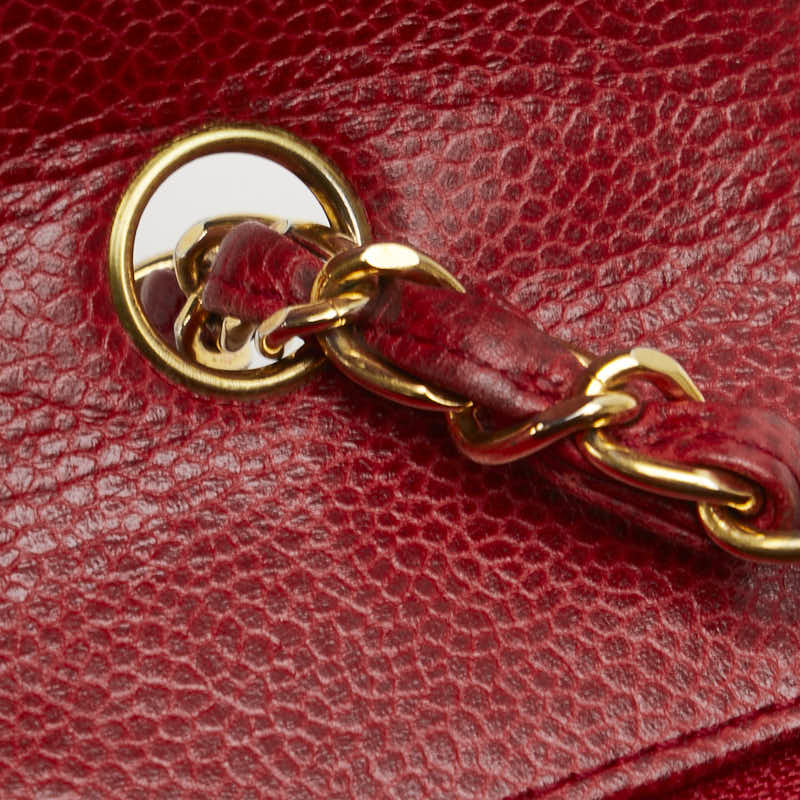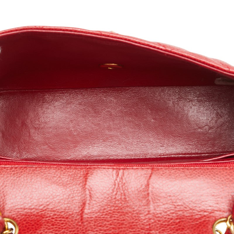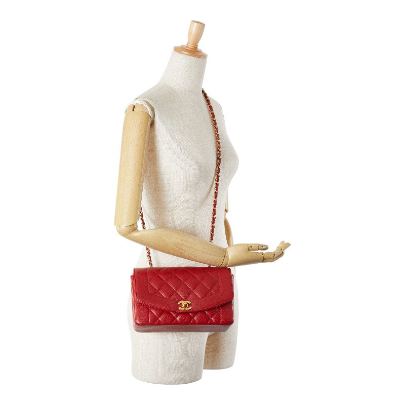 シャネル ダイアナ ココマーク チェーン ショルダーバッグ レッド キャビアスキン レディース CHANEL 【中古】
