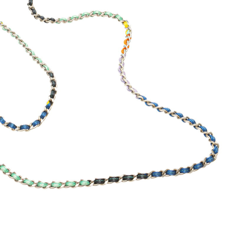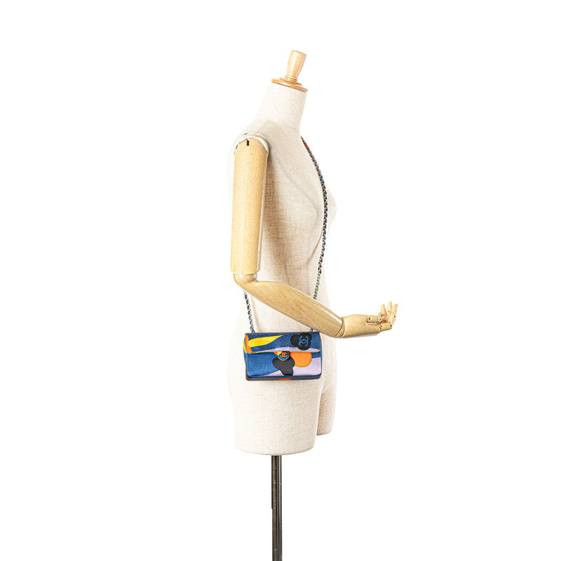 シャネル ココマーク プリント ミニ チェーン ショルダーバッグ ブルー マルチカラー サテン レディース CHANEL 【中古】