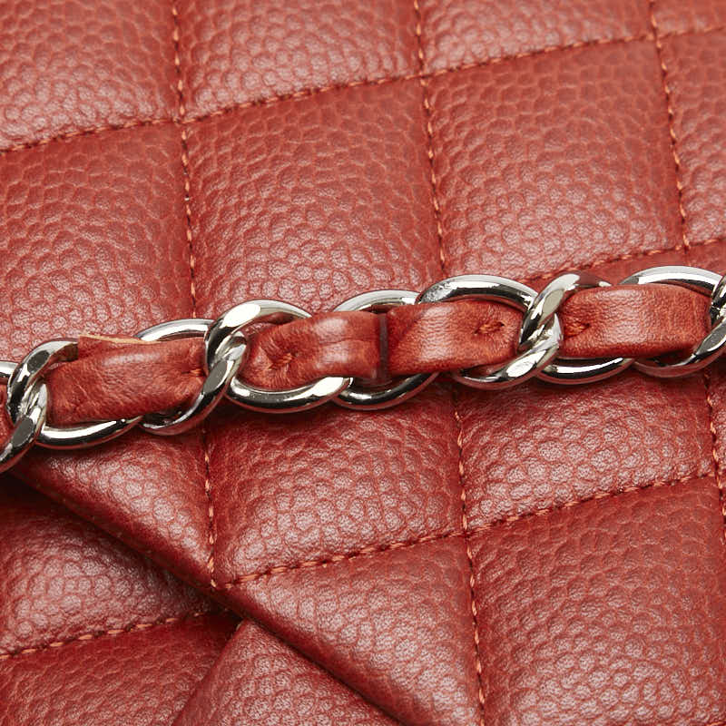シャネル ココマーク マトラッセ25 ダブルフラップ チェーン ショルダーバッグ レッド キャビアスキン レディース CHANEL 【中古】