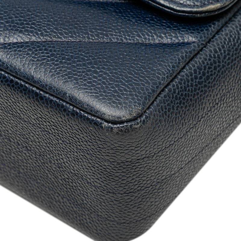 シャネル ココマーク バイアスステッチ チェーン ショルダーバッグ ネイビー ゴールド金具 キャビアスキン レディース CHANEL 【中古】