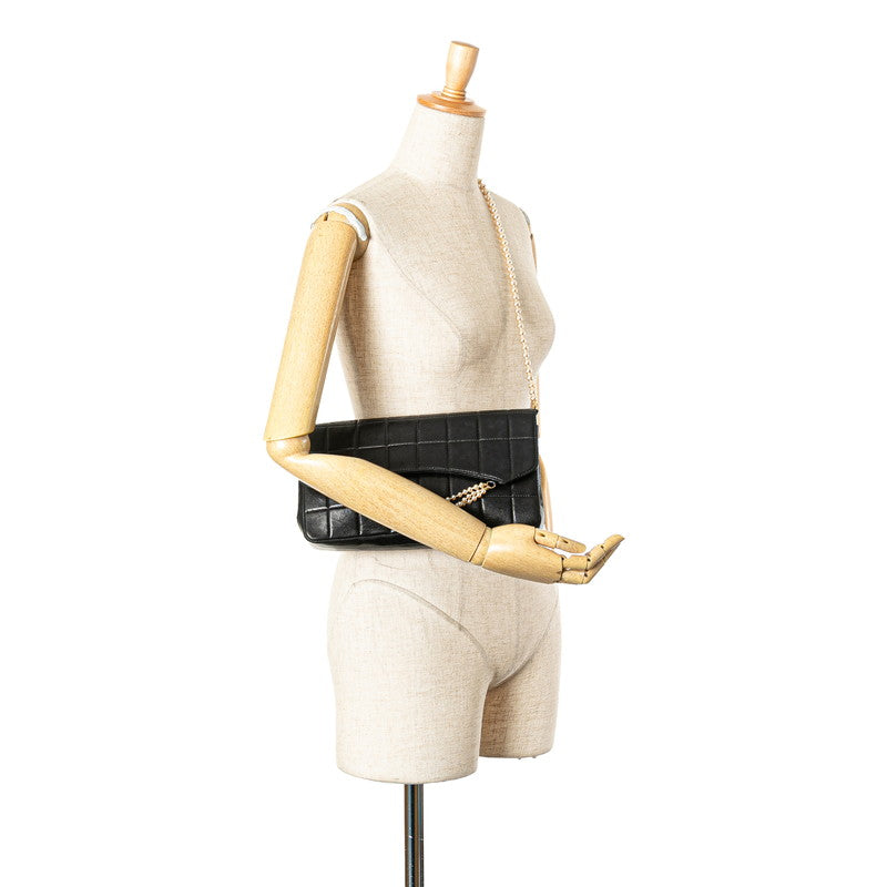 シャネル チョコバー ショルダーバッグ ブラック ラムスキン フェイクパール レディース CHANEL 【中古】