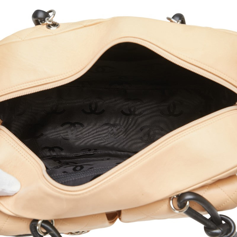 シャネル カンボンライン ショルダーバッグ ハンドバッグ ベージュ ブラック レザー レディース CHANEL 【中古】
