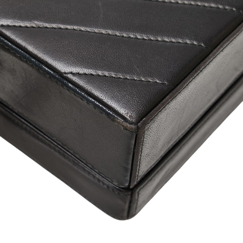 シャネル シェブロン Vステッチ ショルダーバッグ ブラック ラムスキン レディース CHANEL 【中古】
